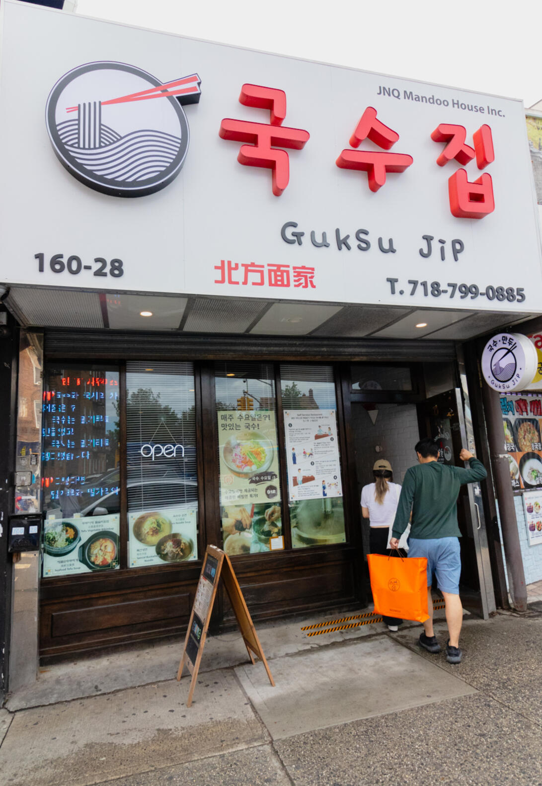 Located between Flushing and Bayside, Guksu Jip is a self-service Korean noodle restaurant serving comforting hot and cold dishes made with freshly kneaded noodles and rich beef bone broth.Our specialty is handmade noodles served with rich beef bone broth, delivering a hearty and satisfying experience. Whether you’re in the mood for something warm or a refreshing cold dish, our menu has something for everyone.Most of our noodle dishes are just $15.95 — warm, cold, spicy, or mild. Signature and seafood noodle upgrade available for just $2 more.Featured Dishes:Signature Naengmyun